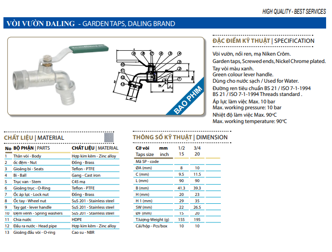 Vòi nước giá rẻ daling đáp ứng cho nhiều nhu cầu của người tiêu dùng nông thôn và thu nhập thấp độ bền cao , vận hành tiện lợi là điều mà nó mang lại