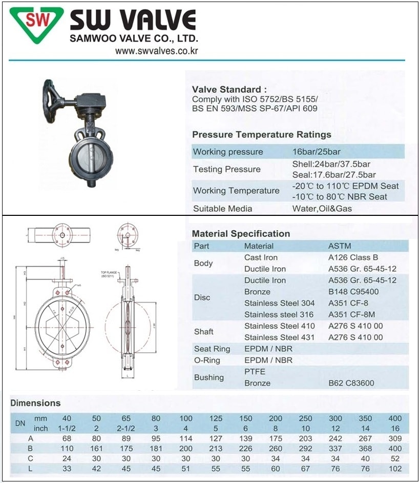 Van bướm tay quay samwoo korea sw đạt chỉ tiêu công nghiệp châu âu với bảng thông số chi tiết ở hình các bạn có thể tham khảo để lựa chọn hợp lý với đường ống của mình