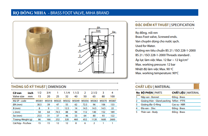 Rọ đồng miha minh hòa chuyên dụng cho hệ thống bơm nước sạch hoặc nước thô nhằm đảm bảo lọc ác rác cặn đi vào đường ống làm kẹt cánh quạt máy bơm đồng thời van một chiều bơm nước sẽ đóng lại để ngăn nước chảy ngược làm tụt áp máy bơm nước .