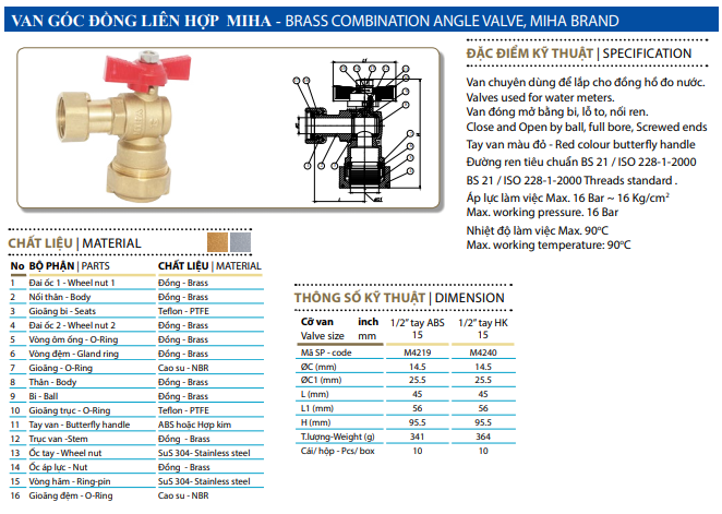Van góc đồng liên hợp miha chuyên dùng cho lắp đặt cụm đồng hồ nước trên hệ thống ống cấp mềm .
